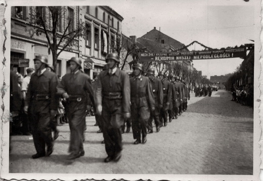 Strażacy w pochodzie poerwszomajowym na pl. Chopina