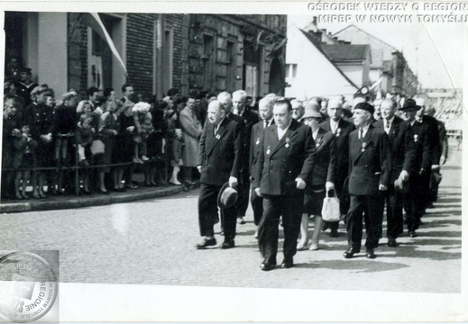 Członkowie nowotomyskiego koła ZBOWiD i powstańcy wielkopolscy w pochodzie 1.majowym