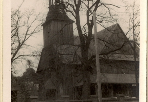 Widok na kościół z posesji przy ul. Kościelnej 15 w Bukowcu