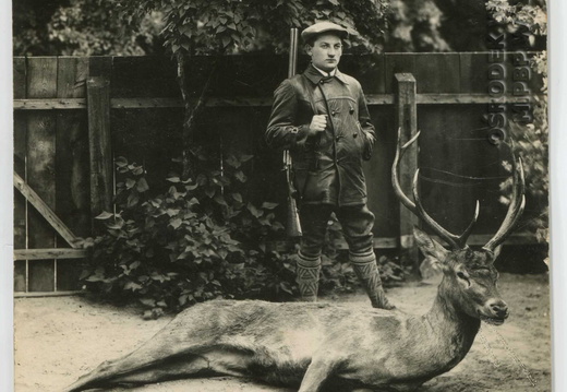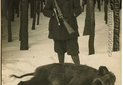 Pamiątkowa fotografia z upolowanym zwierzem.