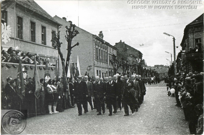 Członkowie nowotomyskiego koła ZBOWiD i powstańcy wielkopolscy w pochodzie 1.majowym