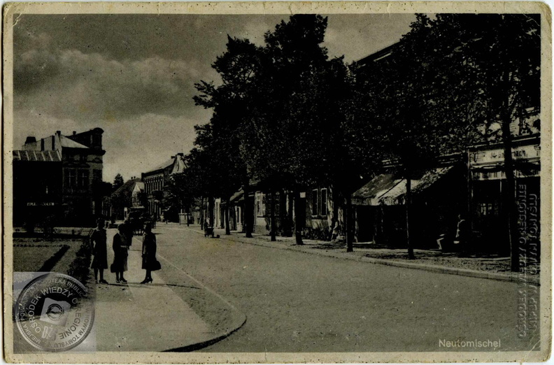 Po prawej stronie dawny kościół staroluterański. Po II wojnie mieścił się w nim magazyn mebli. Budynek spłonął w latach 80.XX wieku. Po pożarze został rozebrany.