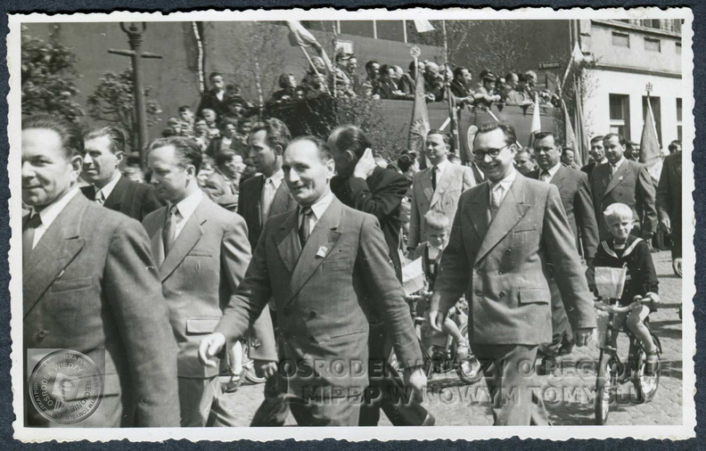 Ze zbiorów Miejskiej i Powiatowej Biblioteki Publicznej w Nowym Tomyślu.Pracownicy PZGS w pochodzie 1. majowym.