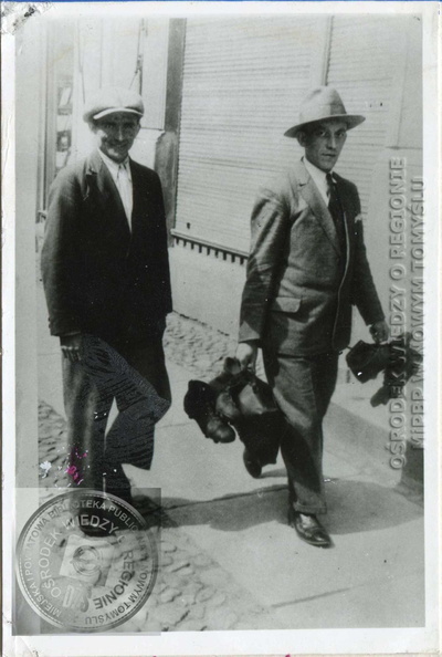 "Zdjęcie z roku 1937 przedstawia drużyny siatkarek; po lewej "Polonii" N. Tomyśl, po prawej "Dyskoboli" Grodzisk, w środku trener Polonii Budzyński. Zespoły na boisku w Nowym Tomyślu (p. St. Kozy) na chwilę przez meczem."