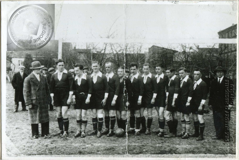 W ciemnych koszulkach zespół piłki nożnej KS "POLONIA" N. Tomyśl. rok 1934.