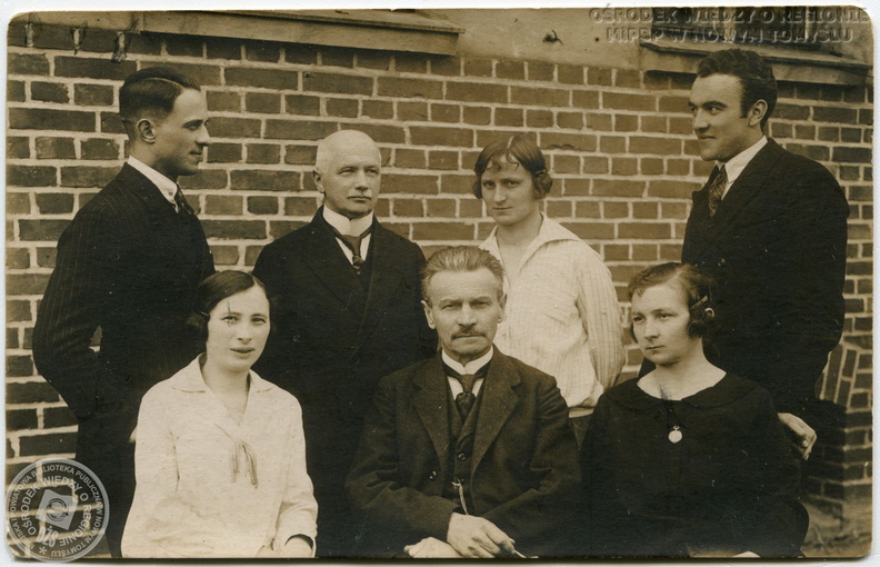 Satkowska Maria ze swoimi wychowankami przed szkołą w Nowym Tomyślu