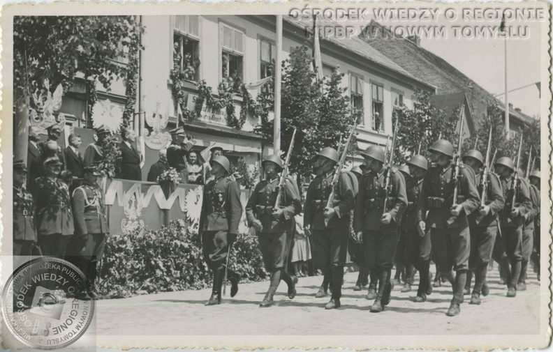 Przed trybuną honorową maszerują żołnierze 57. Pułku Piechoty Karola II Króla Rumunii.