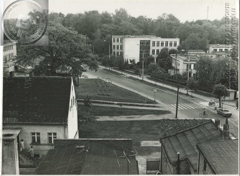 Widok na ulice Tysiąclecia. W głębi budynek Liceum Ogólnokształcącego.