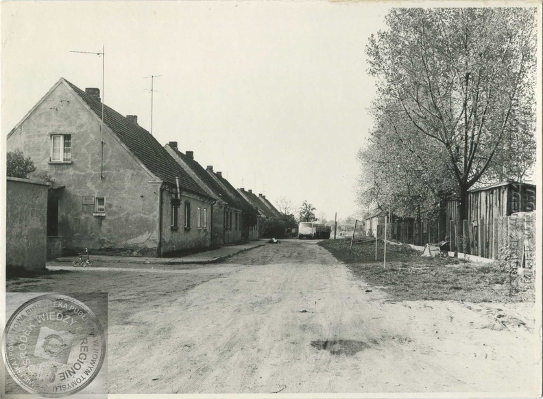 Ulica Chmielna prostopadła do ul. Powstańców Wielkopolskich, Polnej i ulicy M. Konopnickiej. po prawej rząd domków zwanych "berlinkami".