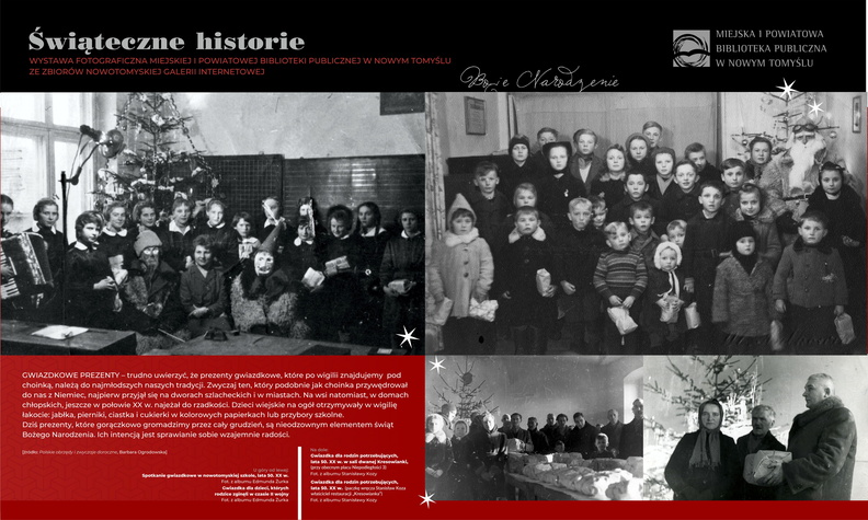 Wystawa plenerowa Ośrodka Wiedzy o Regionie MiP Biblioteki Publicznej w Nowym Tomyślu stworzona na bazie zdjęć zgromadzonych od mieszkańców w Nowotomyskiej Galerii Internetowej. Opracowanie merytoryczne i graficzne Grażyna Matuszak.